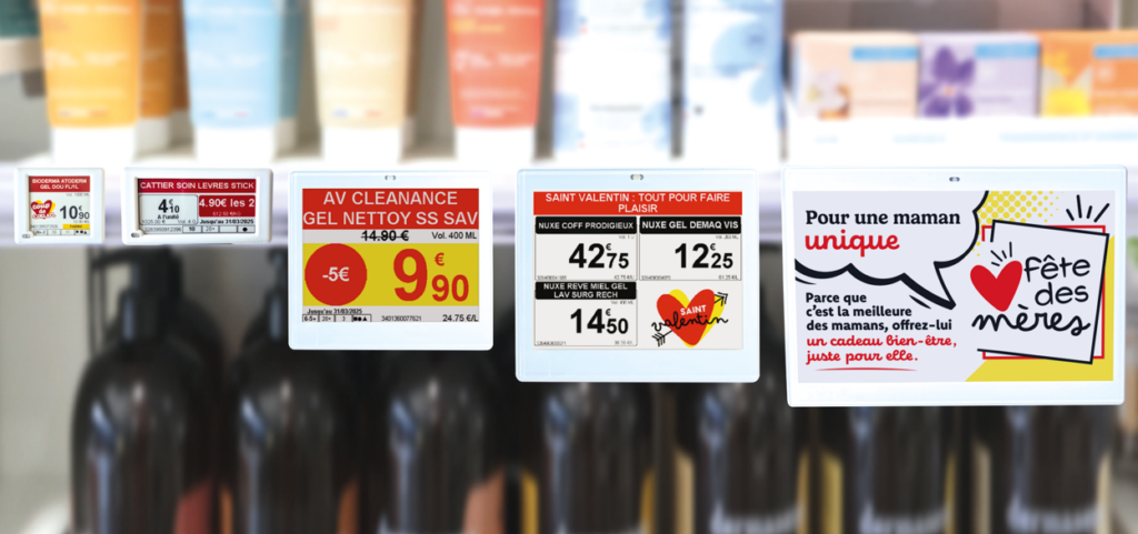 La gamme se décline en cinq tailles d’étiquettes électroniques, répondant ainsi à tous les besoins d’agencement et de communication.
