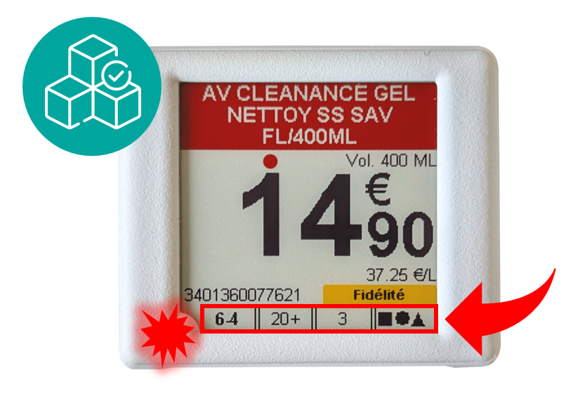 Visualisez instantanément les données de stock directement sur l’étiquette électronique : quantités disponibles, stock en réserve, prévisions de rupture, etc.